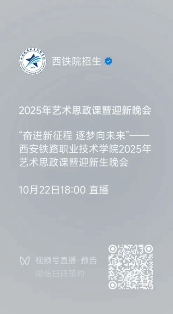 “西铁院招生”微信视频号同步直播不能到现场观看的朋友们记得扫描下方二维码 锁定直播