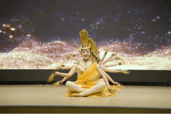 联谊会当晚,西安机车检修段活动现场气氛热烈。伴随着悠远恢弘的乐曲,我院大学生以精湛技艺演绎的《千手观音》率先登场。金碧辉煌的造型、精准默契的配合、慈祥庄严的神韵,瞬间攫取了全场观众的目光。千手依次伸展,如莲花绽放,似光芒普照,不仅展现了舞蹈艺术的精妙绝伦,更传递出和谐共融、大爱无言的深刻内涵,赢得经久不息的掌声。