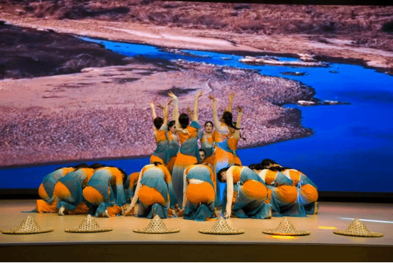 随后,舞蹈《万泉河水》以柔美灵动的舞姿、真挚饱满的情感,生动再现了军民鱼水情的深厚底蕴。演员们手中的斗笠翩跹起舞,仿佛将万泉河的清波与革命老区的淳朴民风带到了现场,其蕴含的红色精神与奋斗情怀,深深感染了在座的每一位为祖国铁路事业辛勤奉献的劳动者。