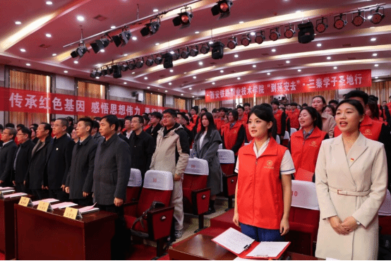 为深入贯彻习近平总书记关于“延安精神是党的宝贵精神财富,要代代传承”的重要指示精神,积极响应省委教育工委等九部门联合印发的《“到延安去”・三秦学子圣地行工作方案》,引导学生深刻把握延安精神时代价值,用好延安革命圣地丰富红色资源,充分发挥实践平台育人作用,11月26日下午,学院在港务校区隆重举行“到延安去”・三秦学子圣地行实践活动出征仪式。学院党委副书记任治军,党委宣传部、党委学工部、团委、马克思主义学院等部门负责人,各二级学院党总支书记及236名实践团师生齐聚现场,共同见证这场承载初心与使命的红色征程启航。仪式由团委办公室主任田辰主持。