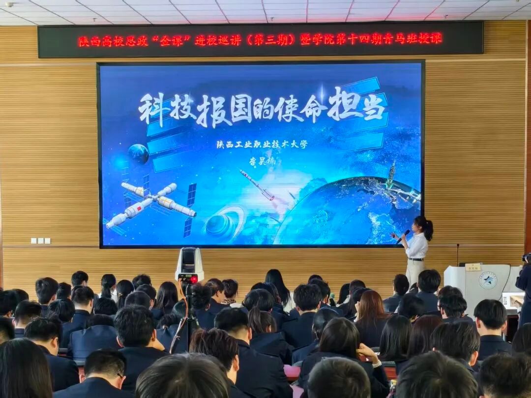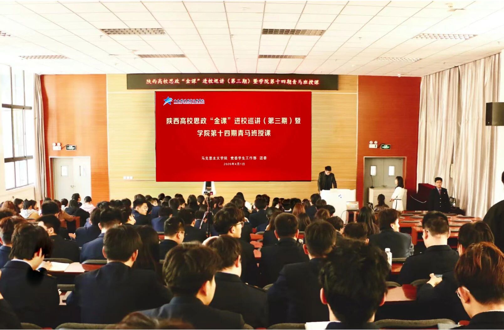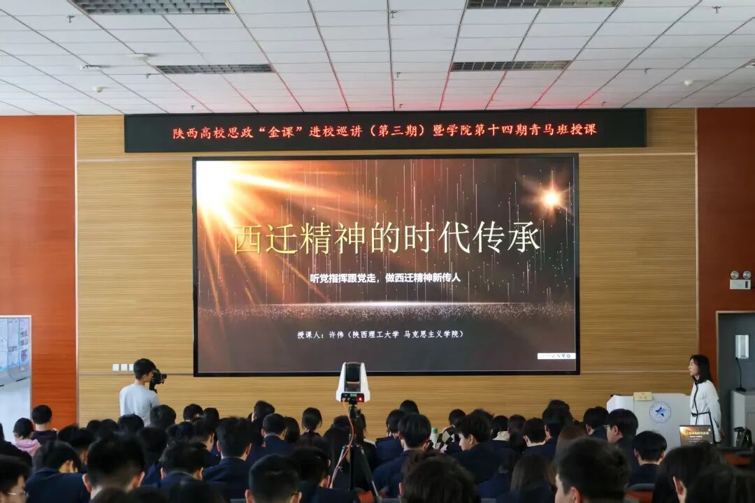 为深入贯彻落实立德树人根本任务,引导青年大学生在理论学习中筑牢信仰之基、坚定理想信念、厚植家国情怀,4月1日下午,陕西高校思政“金课”进校巡讲(第三期)暨学院第十四期青马班授课在机电工程学院一楼报告厅隆重举行。本次活动由马克思主义学院院长邢卫红主持,党委学生工作部、团委、马克思主义学院相关领导老师,各二级学院辅导员、班主任代表及第十四期青马班全体学员,共同聆听了一场思想深邃、催人奋进的精神洗礼。