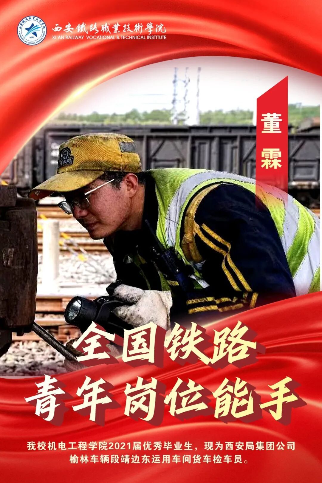 董霖,机电工程学院2021届毕业生,现为西安局集团公司榆林车辆段靖边东运用车间货车检车员。作为一名货车检车员,他始终秉持安全第一理念,标准化作业、精检细修,累计处置大量车辆故障,成功消除多起行车隐患;在急难险重任务面前,他始终冲锋在前,全力护航北煤南运能源大通道安全畅通。他刻苦钻研业务,不断提升技能水平,2025年荣获全国铁路青年岗位能手称号,并连续两年被评为榆林车辆段安全生产先进个人、段优秀共青团员;作为班组骨干,他积极传帮带新职工,主动分享经验,助力青年提升业务能力。他用实干践行铁路人的使命担当,用奉献诠释责任与坚守。