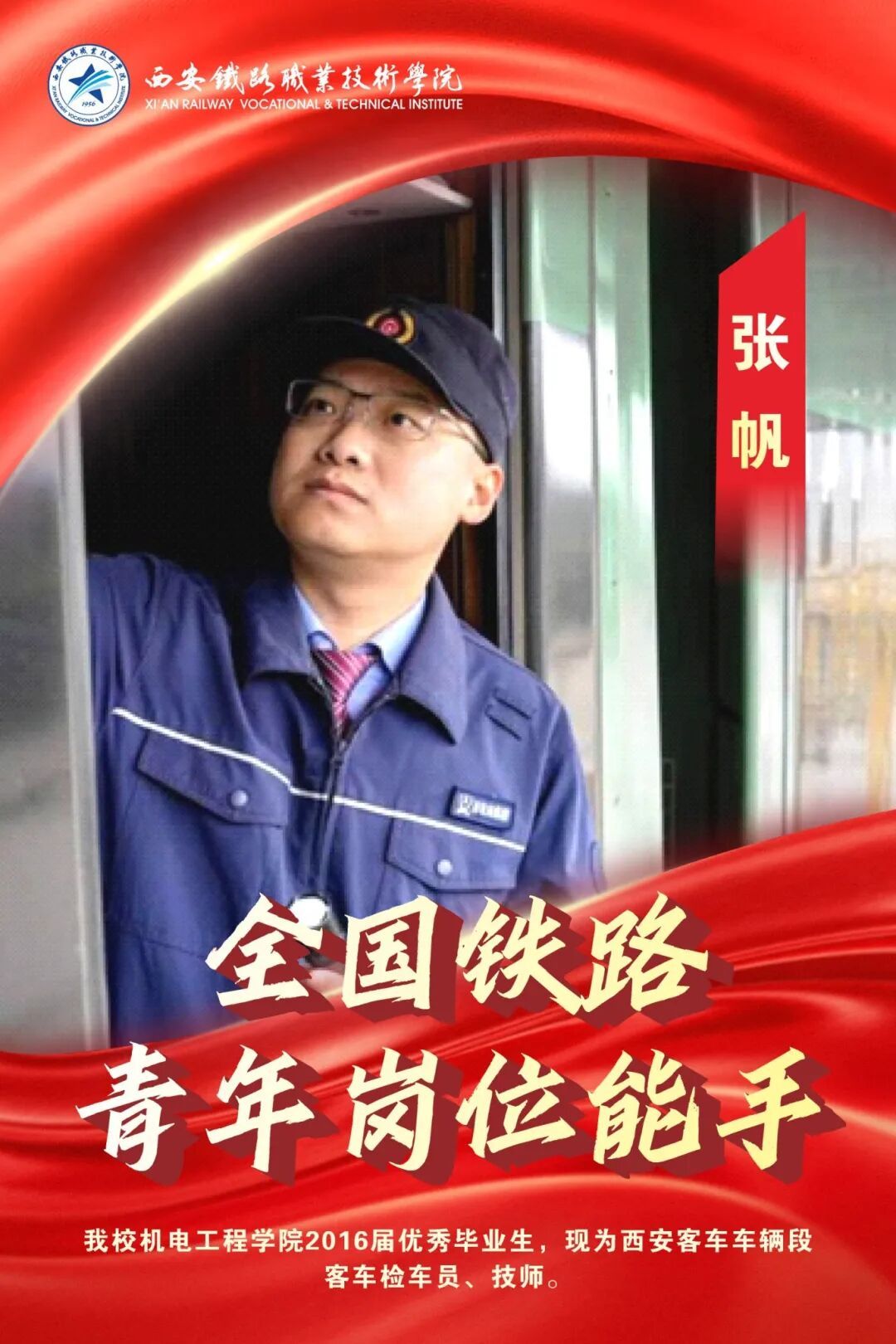 张帆,机电工程学院2016届毕业生,现为西安客车车辆段客车检车员、技师。入路以来,他坚持学习、善于总结,在各级技能竞赛中屡获佳绩:2021年段比武车电员第三名、局比武第一名;2022年获集团公司技术能手;2023年考取技师并受聘;2025年段比武、局比武机械师分获第二、第一名,同年参加国铁技能竞赛获随车机械师第一名、全路技术能手称号,并推荐火车头奖章。他以赛促学、以技立身,在急难险重任务中始终冲锋在前。