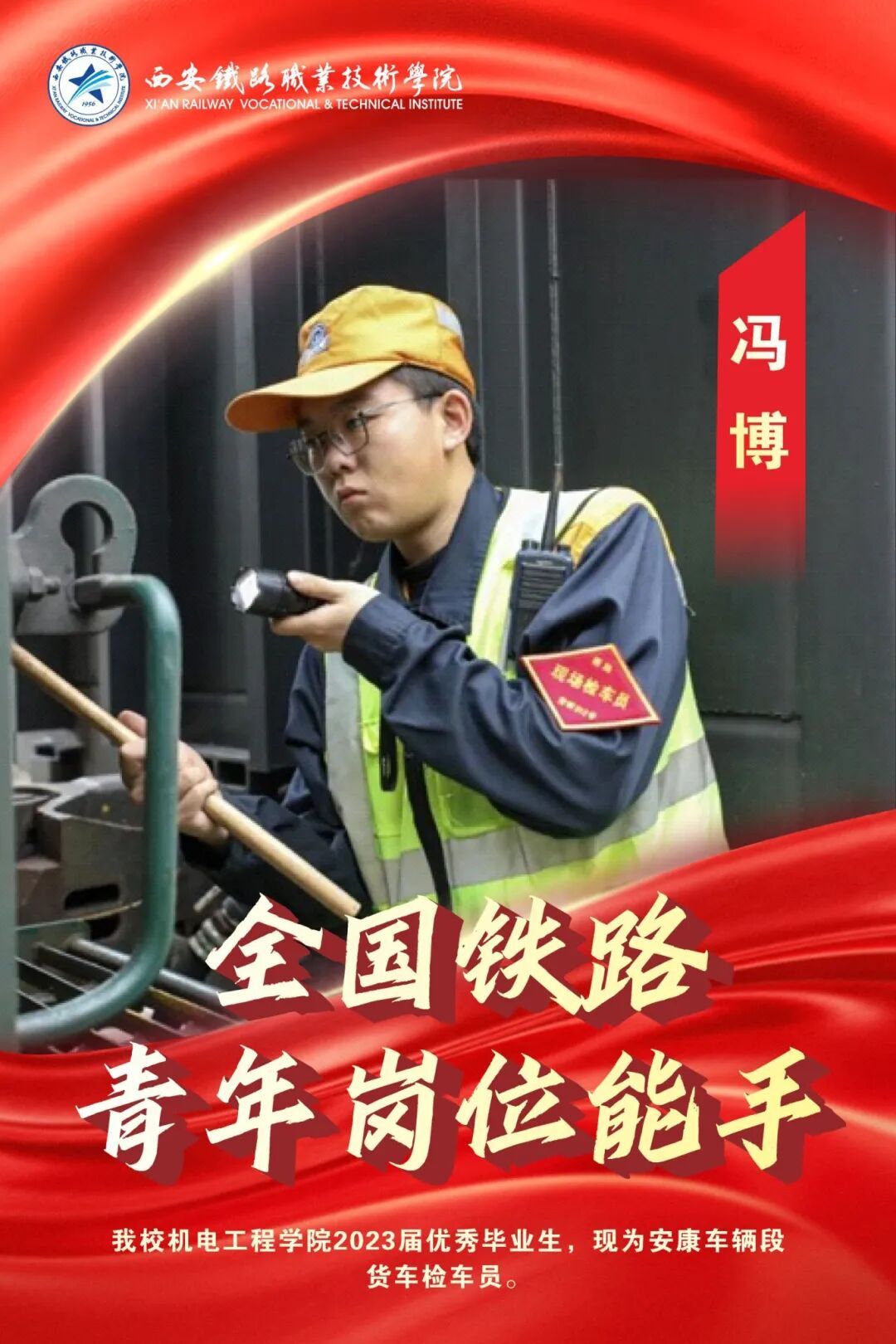 冯博,机电工程学院2023届毕业生,现为安康车辆段货车检车员。入路以来,他坚持以汗水补短板、用专注强本领,不耻下问,把规程内容从“熟记于心”转化为“灵活运用”,构建起牢固的知识框架。2025年在铁路货车运用职业技能竞赛货车检车员项目中,斩获个人综合成绩第二名,用实干证明了青年一代的拼搏与担当。