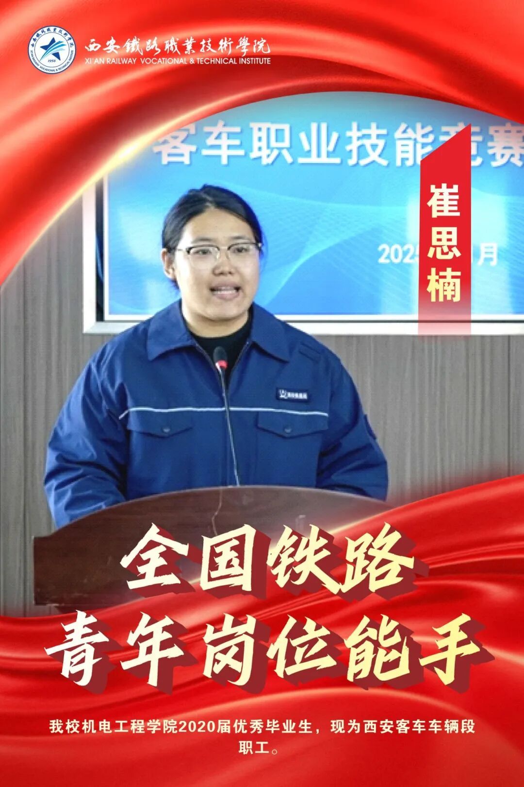 崔思楠,机电工程学院2020届毕业生,现为西安客车车辆段职工。她立足无损检测岗位,以女性特有的细致与专注,严把客车安全关口。2025年荣获国铁集团机辆系统客车职业竞赛“无损检测员”第三名,用精准检测践行“零缺陷、零疏漏”的工作信条,展现了西铁青年女职工的过硬本领。