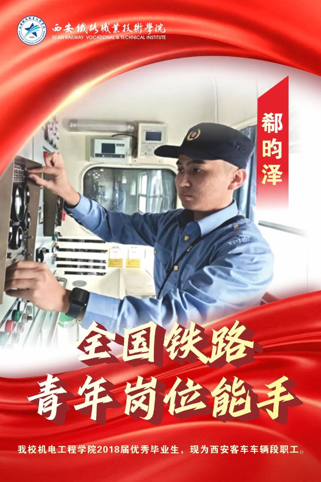 郗昀泽,机电工程学院2018届毕业生,现为西安客车车辆段职工。入职以来,他踏实肯干、勤学善思,注重理论与实践结合,2022年取得本科学历。2022年获段职业技能竞赛发电车乘务员个人全能第一名;2023年获局职业技能竞赛第一名,取得高级工技能等级;2024年被授予集团公司技术能手、铁路青年岗位能手;2025年荣获铁路机辆系统客车职业技能竞赛发电车乘务员组第六名,他用持续精进诠释了青年工匠精神。