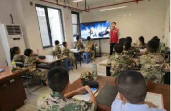 为精准对接社区青少年成长需求,志愿服务队与深渡路社区紧密协作,联合组建“红领巾少年军校”,形成“志愿主导、社区协同”的服务模式。志愿者们结合自身特长与青少年成长特点,系统规划活动内容,社区则全力保障场地、人员组织等基础工作,双方联动为活动开展筑牢基础,让志愿服务从“单点参与”走向“系统赋能”。