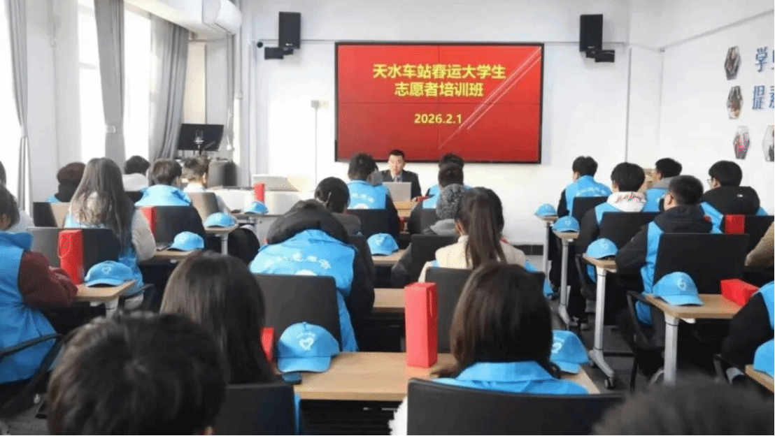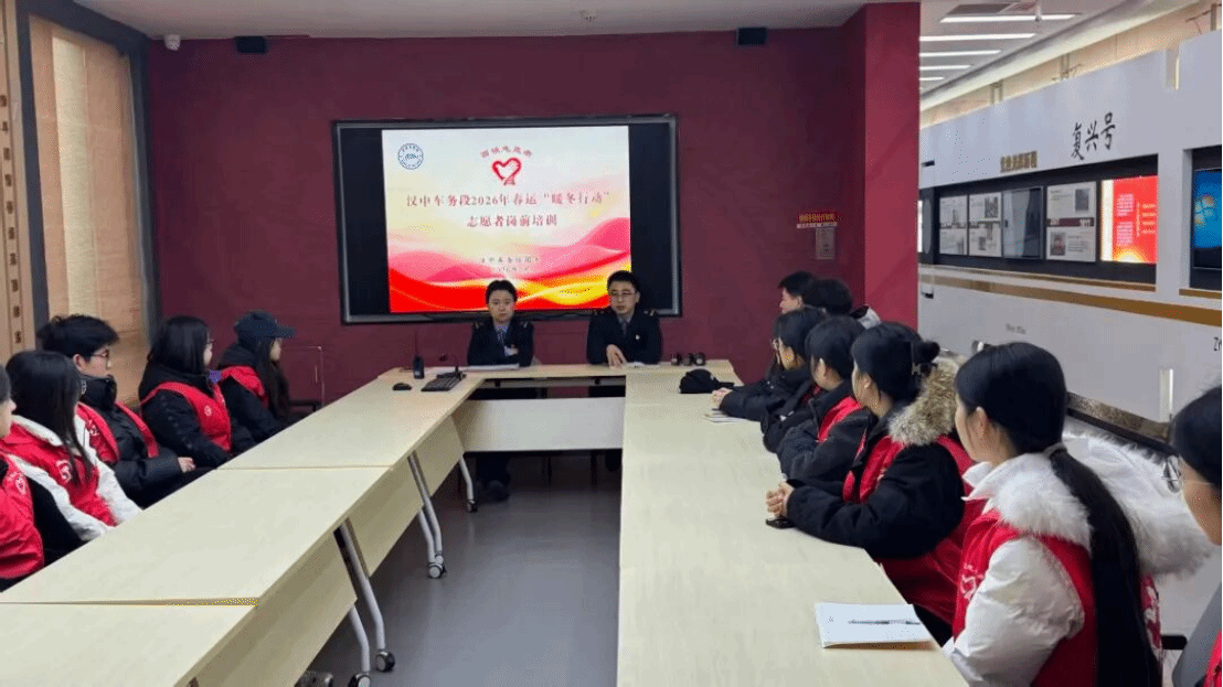 1月31日上午8时,全体志愿者在完成期末考试并经过短暂休整后,准时于各服务车站集结报到,并接受系统岗前培训。学院343名志愿者服务于西安局辖内西安站、西安北站、宝鸡南站、宝鸡站、杨凌南站、汉中站、安康站、渭南北站、延安站、榆林站等十个车站;36名志愿者服务于兰州局辖内兰州站、兰州西站、银川站、庆阳站、天水站、天水南站、武威东站、定西北站等八个车站。2026年春运于今日(2月2日)正式启动,学院志愿者们也已全面进入服务状态。西安局343名志愿者今日起正式上岗,兰州局36名志愿者将于明日投入服务。他们将以专业、热情、细致的服务,正式开启服务2026年铁路春运志愿工作的序幕,在实践中诠释青年担当。